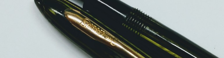 Though I haven’t yet felt I could justify spending $300 for a pen, I was quite interested in trying a gold nib. The cheapest way to do this was to go vintage, and that’s when I found this beauty.